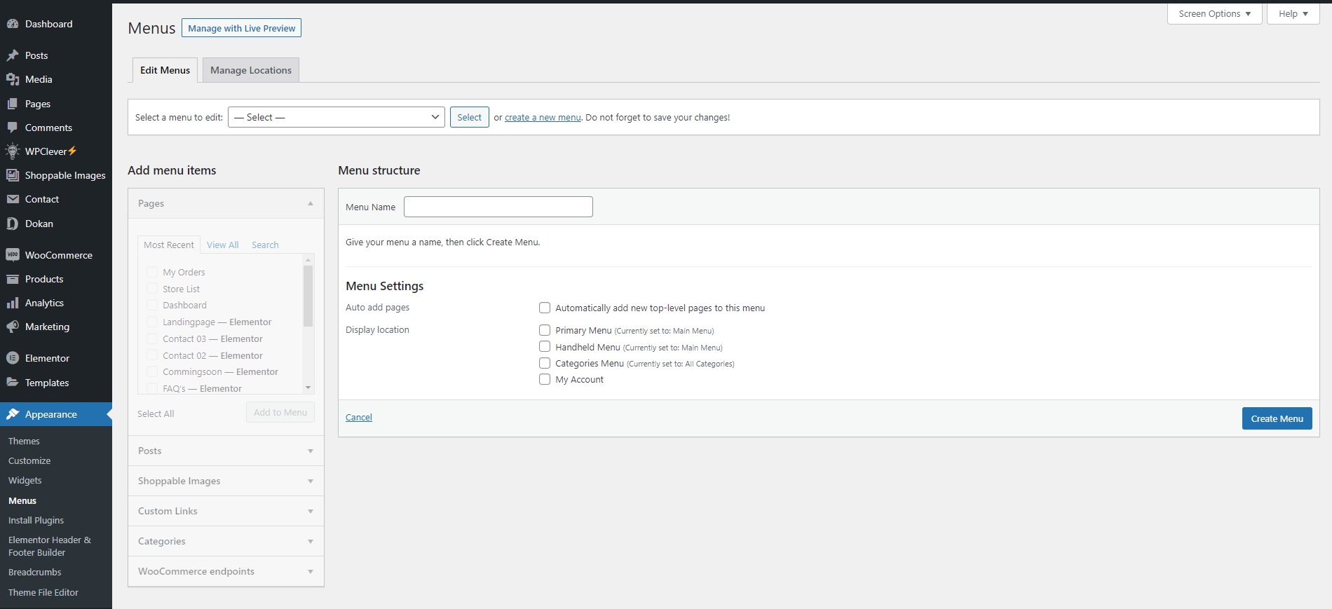 Step 2- From the 'Appearance' menu on the left-hand side of the Dashboard, select the 'Menus' option to bring up the Menu Editor.