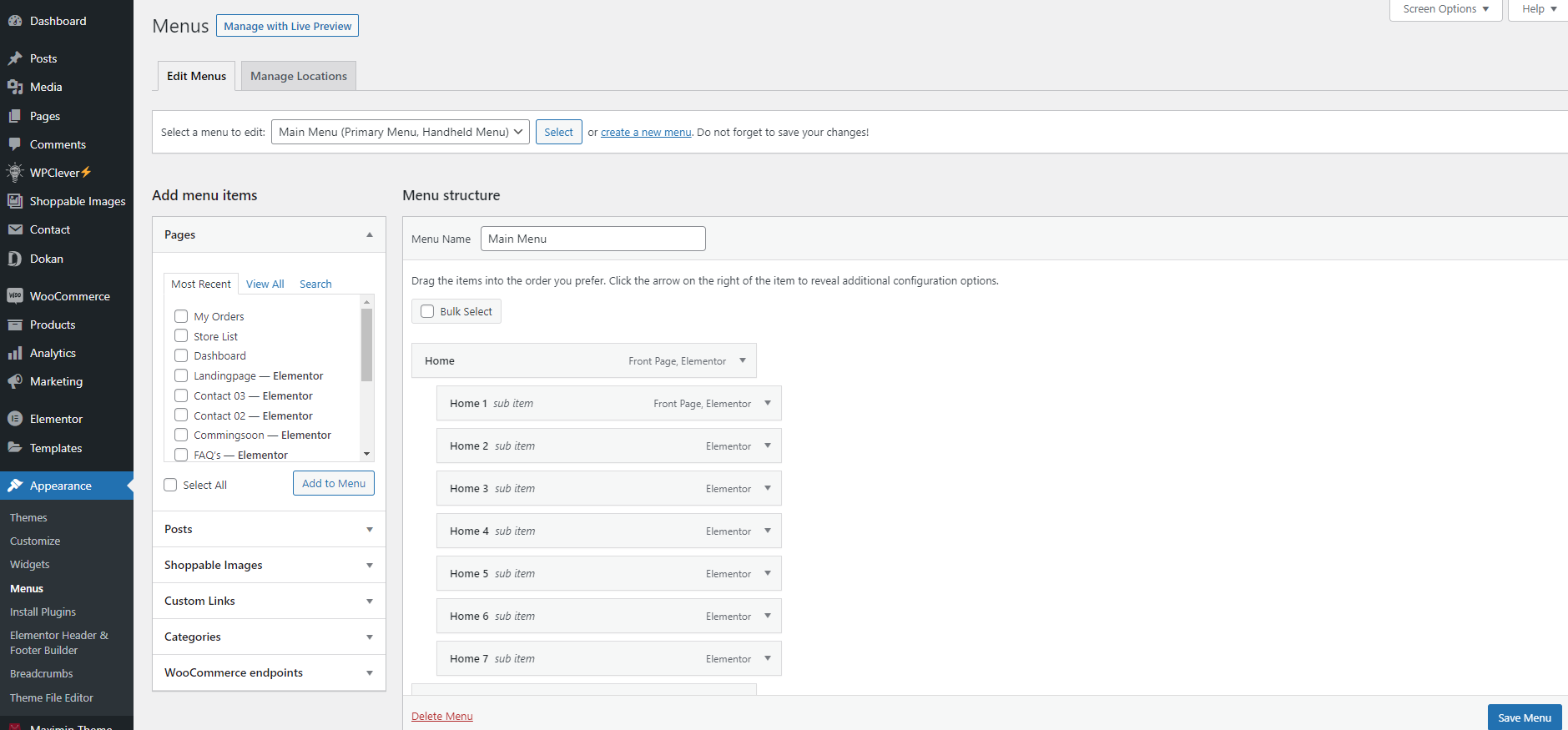 Step 2- From the 'Appearance' menu on the left-hand side of the Dashboard, select the 'Menus' option to bring up the Menu Editor.